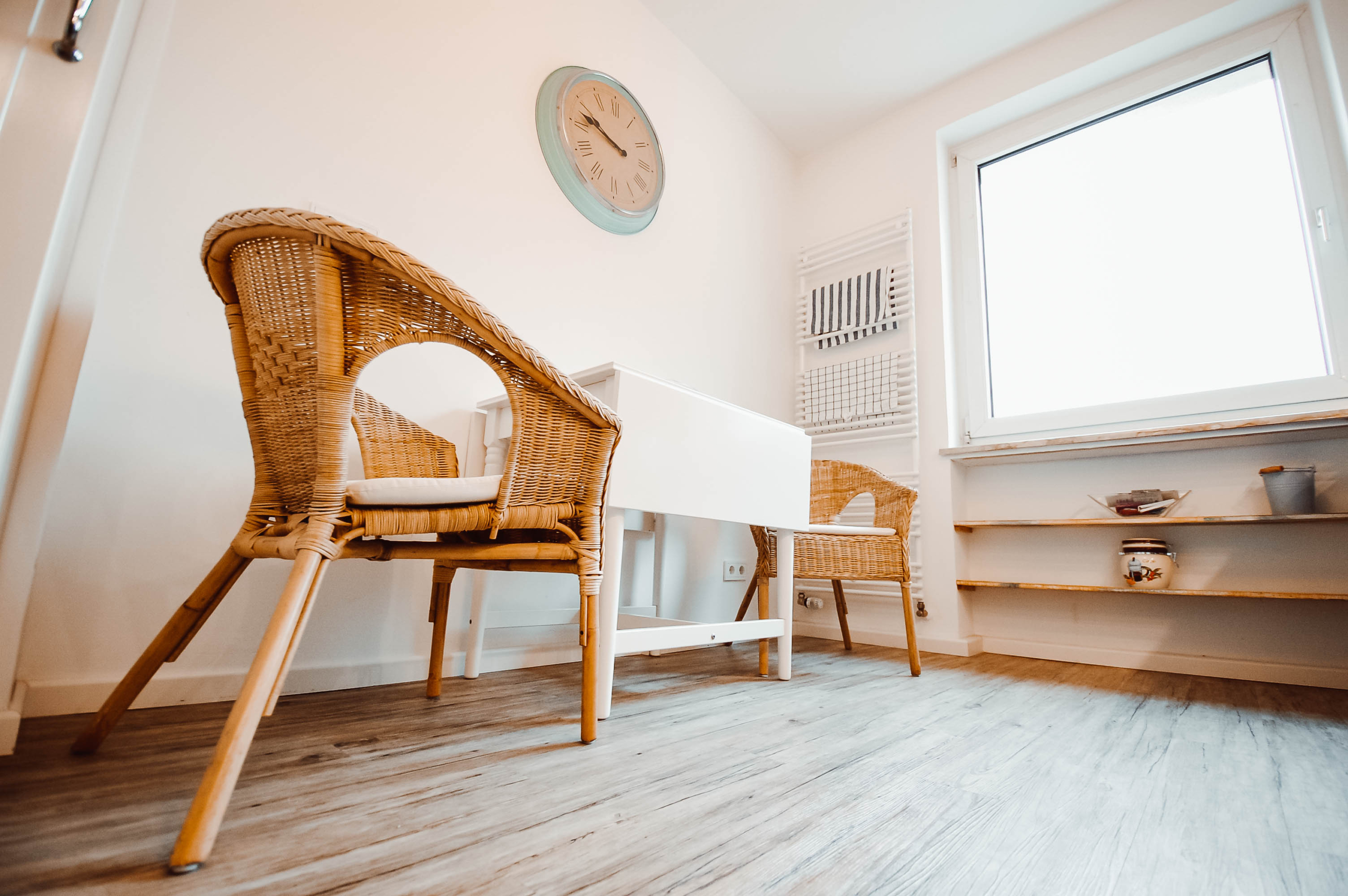 Die Küche sammelt Pluspunkte durch ihren geräumigen Schnitt. Ob Frühstück zu zweit, ein schnelles Mittagessen oder ein gemeinschaftlicher Abend mit Freunden, hier findet jeder seinen Sitzplatz. Der helle Stil wurde hier ebenfalls gewahrt und rundet das Bild der Wohnung besonders schön ab. Und noch ein Highlight müssen wir Ihnen auf dem Weg zur Besichtigung mitgeben. Die Küche kann durch einen Balkonanbau vergrößert werden. Beschlossen ist es.